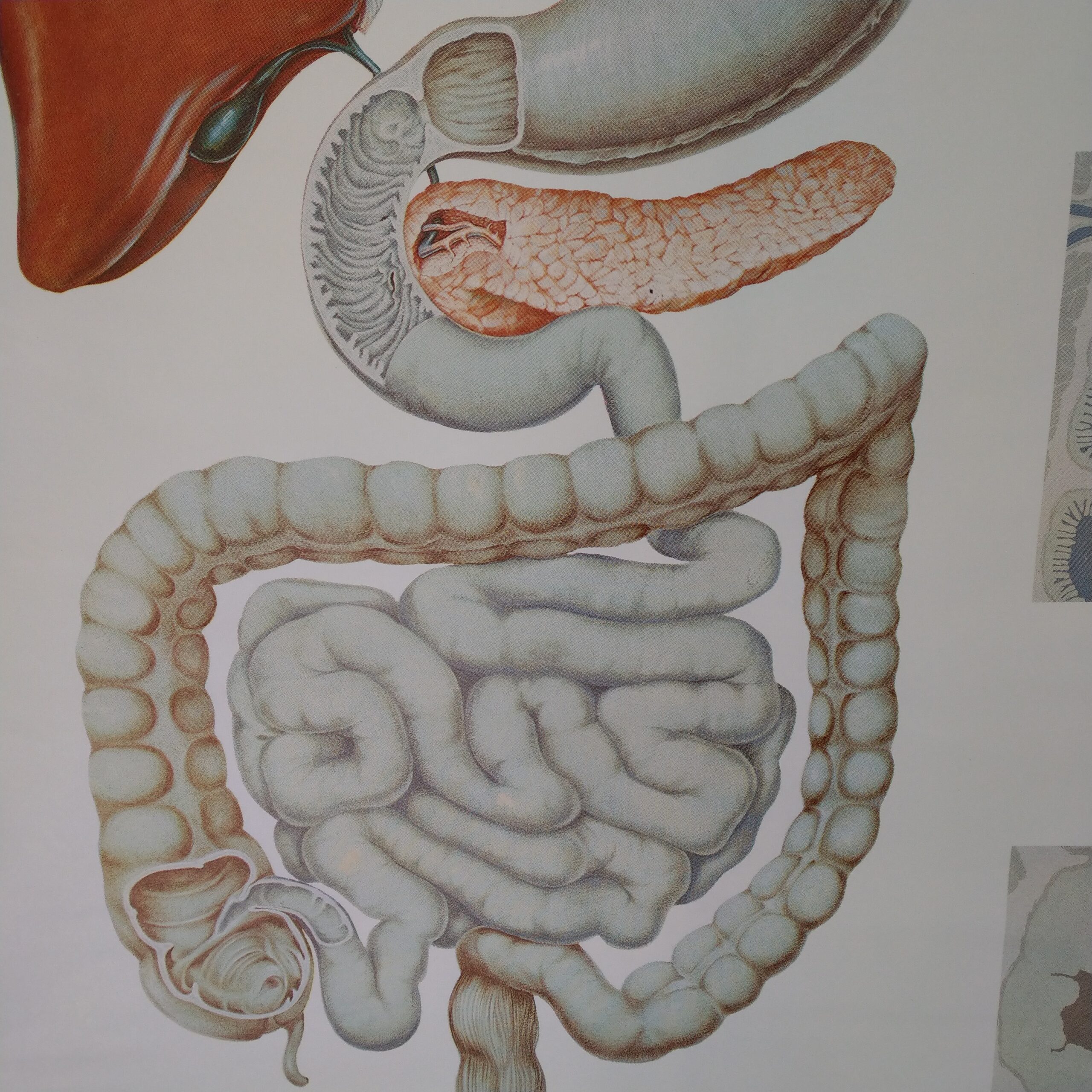 Uit de serie – menskunde van het Deutsches Hygiene Museum zien we hier het spijsverteringsstelsel kleurrijk weergegeven.