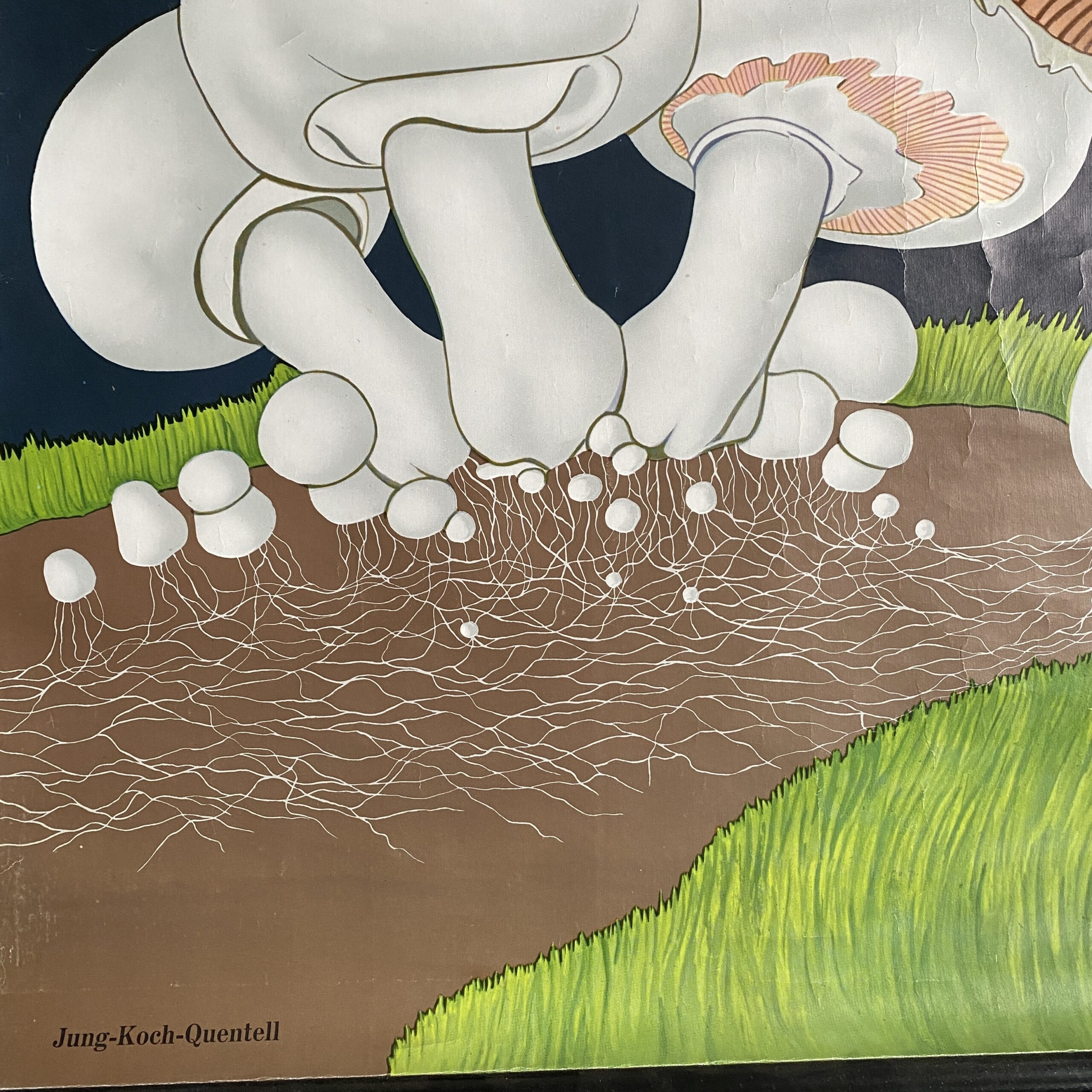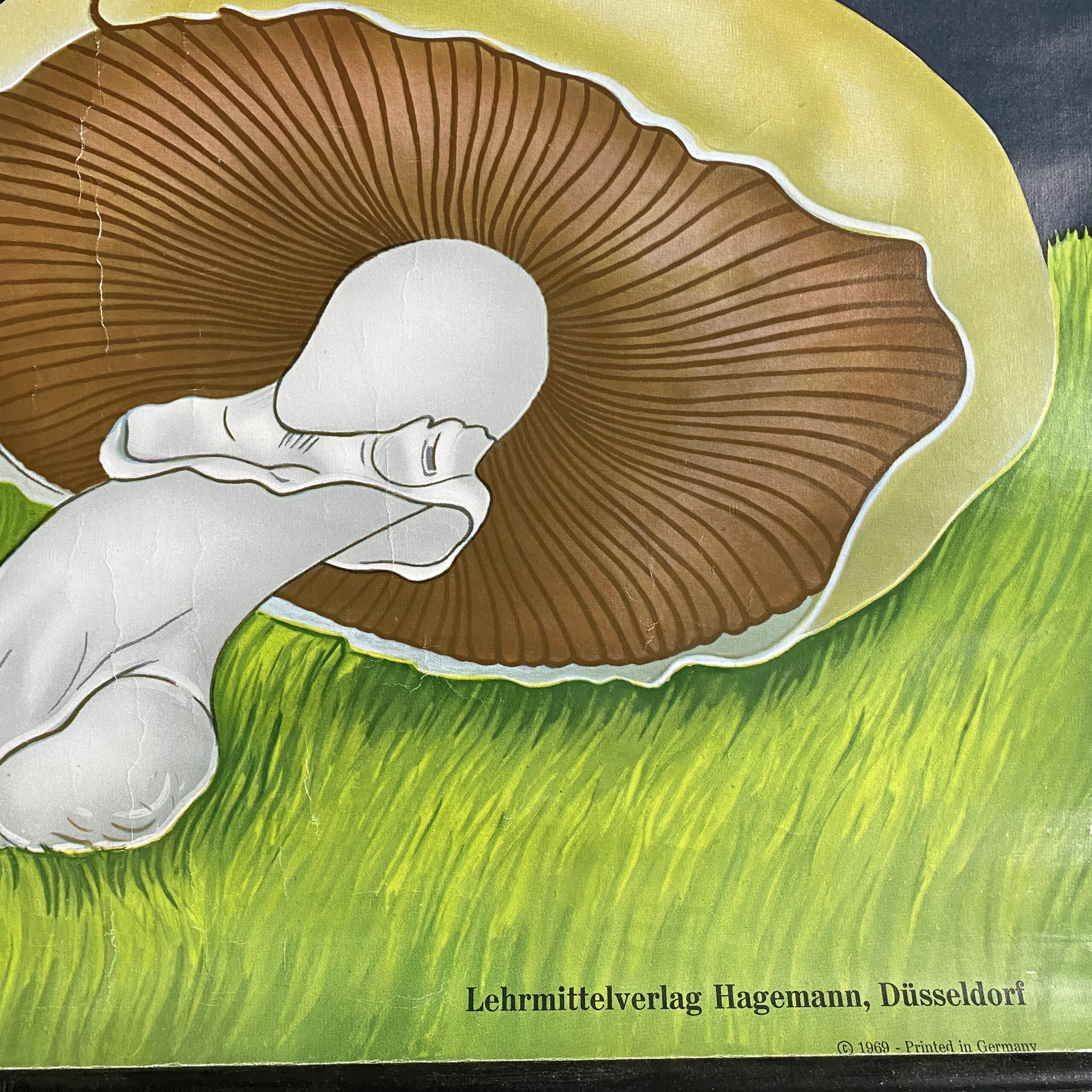 Schoolplaat van de Wiesenchampignon (psalliota campestris), in het Nederlands: gewone weidechampignon van Jung Koch Quentell.